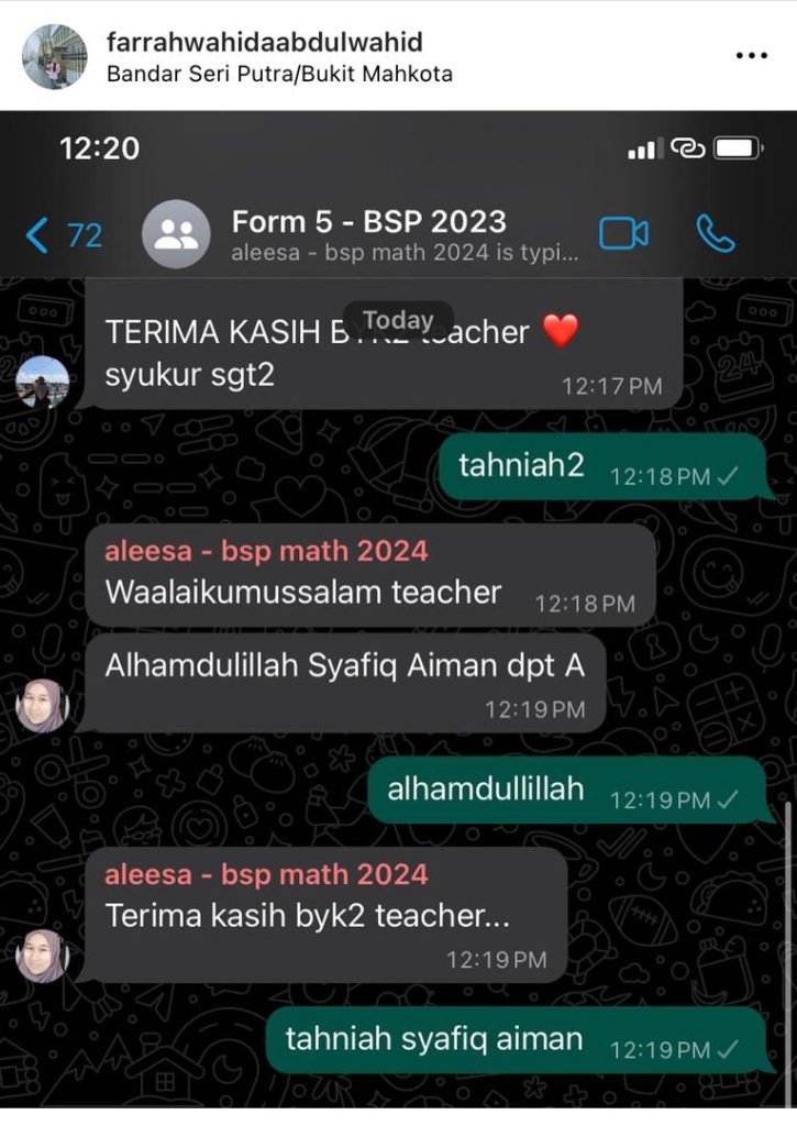 Alhamdulillah, syukur atas kejayaan pelajar-pelajar Program Bijak Math dalam peperiksaan terkini.