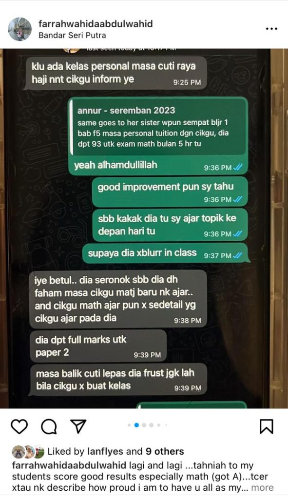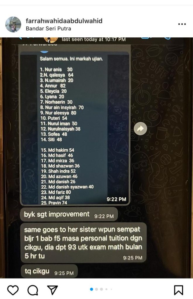 β€’ Skor 93 dalam peperiksaan Matematik selepas sesi personal tuition